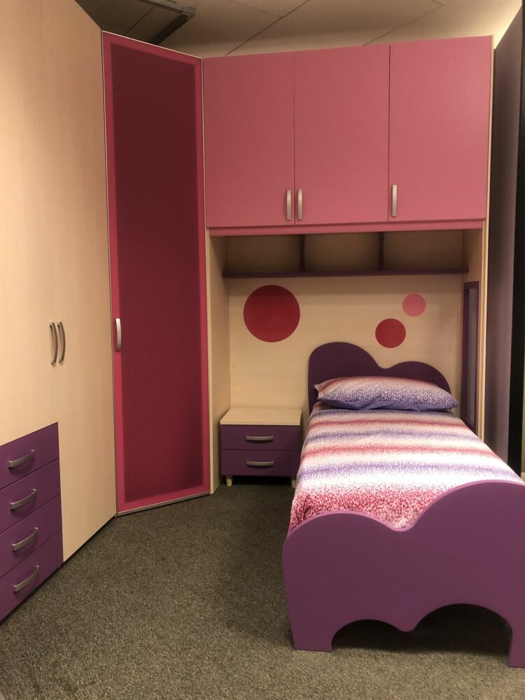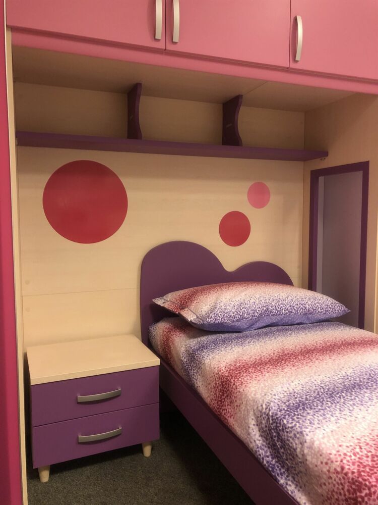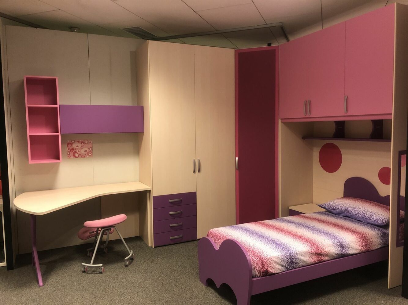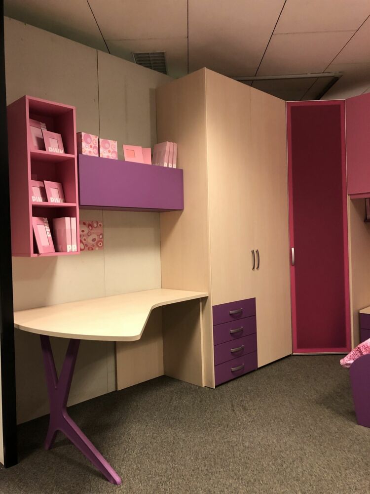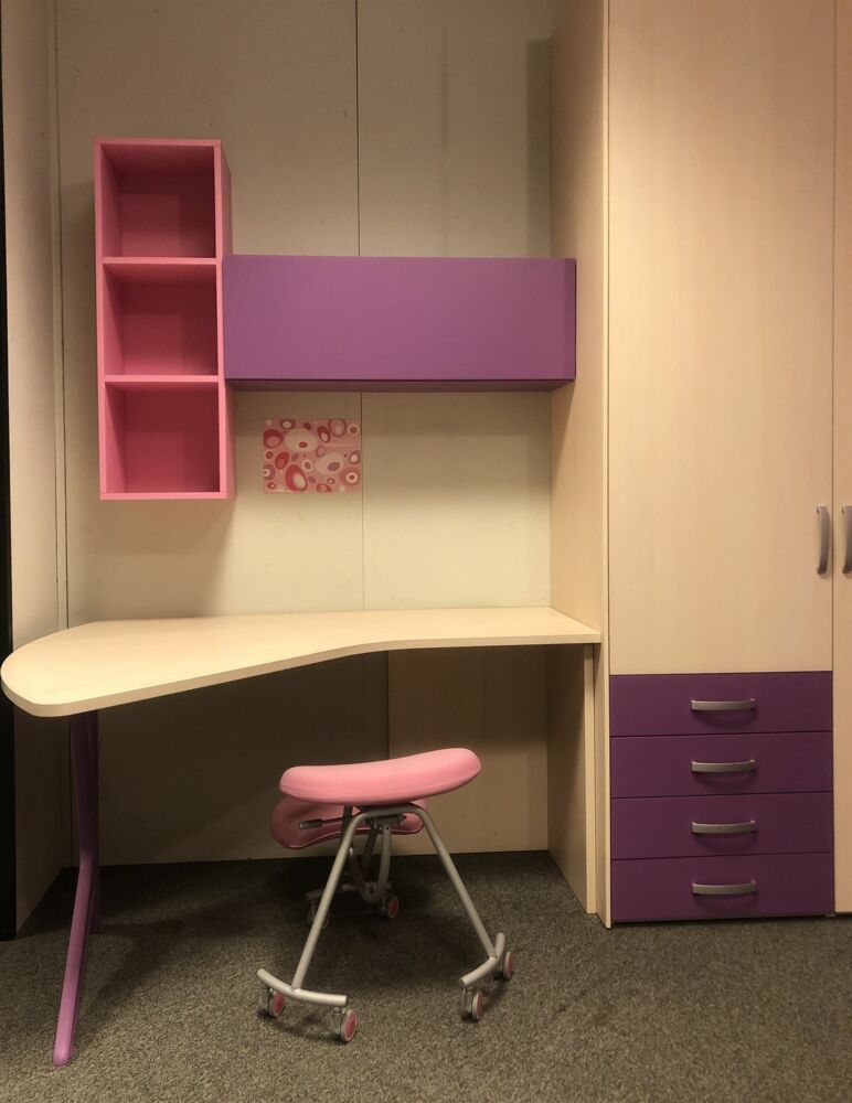 CAMERETTA COLOR ACERO, ROSA E MALVA COMPLETA DI LETTO, ARMADIO E SCRIVANIA