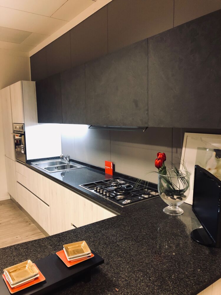 DISPONIBILE LA STESSA COMPOSIZIONE CON TOP IN LAMINATO E PENSILI IN MATERICO EFFETTO CEMENTO € 8.900,00