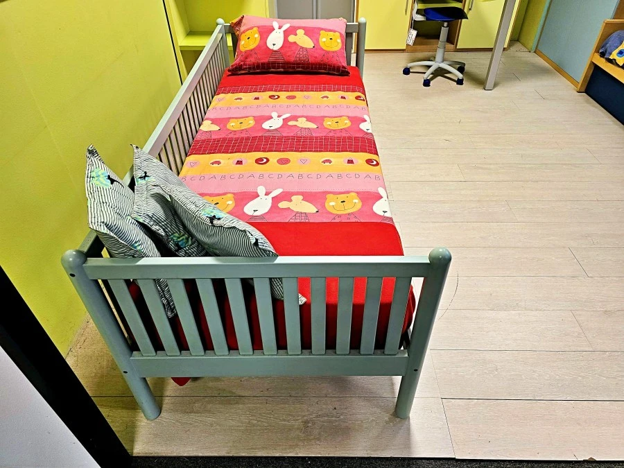 La rete a doghe in legno inclusa garantisce un supporto ottimale per il materasso, offrendo comfort e durata nel tempo. Sebbene il materasso non sia incluso, la misura standard della rete (80 x 190 cm) permette di scegliere facilmente quello più adatto alle proprie esigenze.