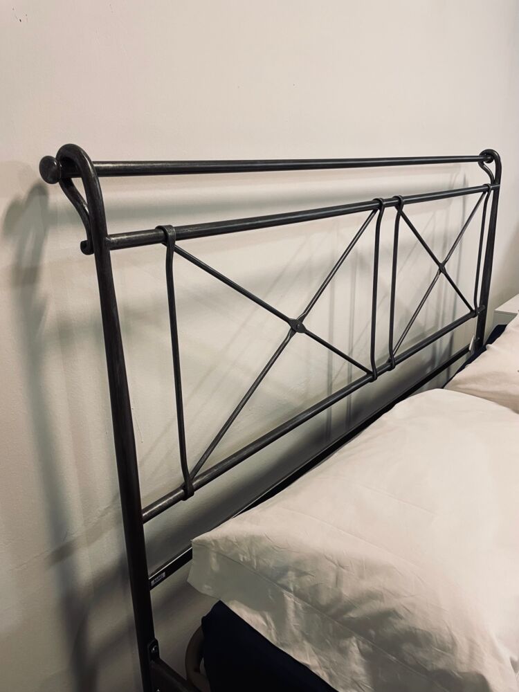 LETTO IN FERRO ANTICATO CON TESTIERA E GIROLETTO CON RETE 160X200
