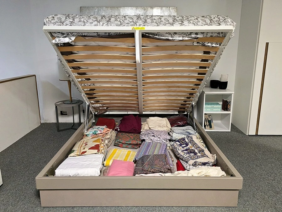 Inoltre, il letto è dotato di un pratico contenitore, ideale per ottimizzare lo spazio e mantenere l’ambiente ordinato.