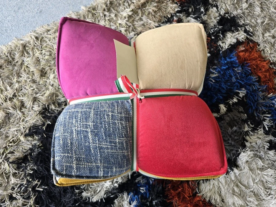 In aggiunta, il pouf è decorato con una fascetta tricolore Casa Azzurri, che lo rende particolarmente speciale. Questo dettaglio, realizzato in tiratura limitata, non solo celebra l’eccellenza italiana, ma rappresenta anche una connessione con il mondo dello sport, grazie alla partnership con Casa Azzurri.