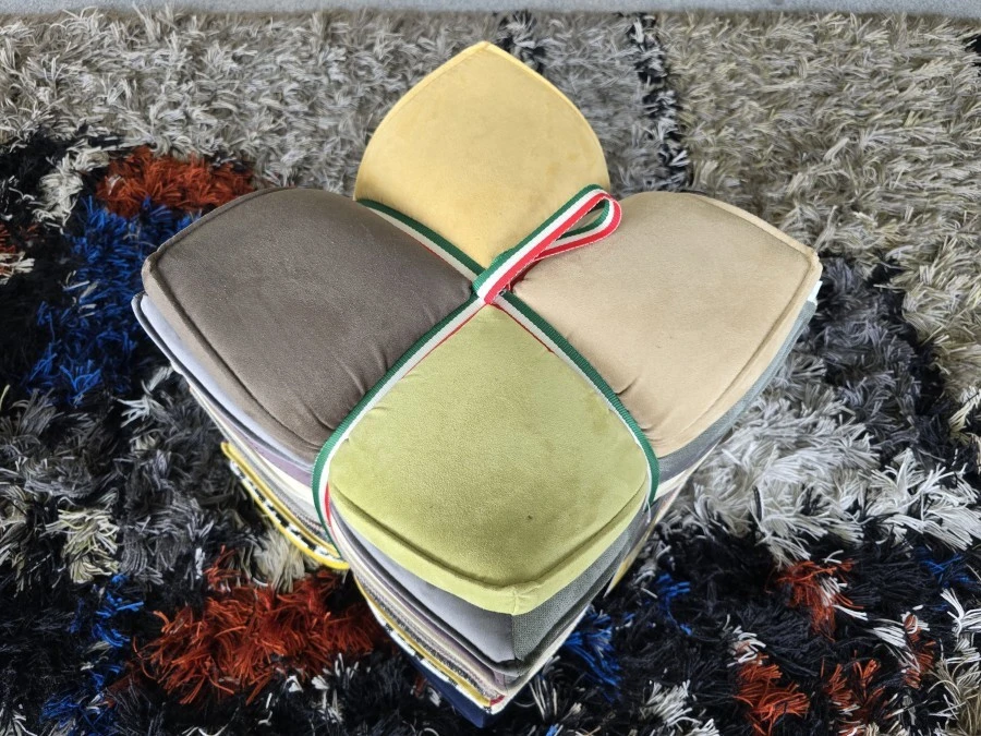 Con il suo nome che in vernacolo materano significa “gli stracci”, il pouf rappresenta una fusione tra tradizione, innovazione e impegno ecologico.