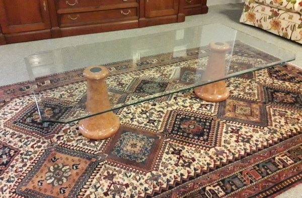 TAVOLINO IN MARMO E PIANO IN VETRO BISELLATO
